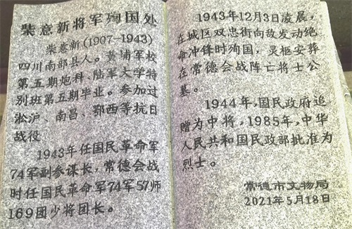 常德保卫战守城将士事先撤出城内民众,作了与城共存亡的决死准备,在常德东门、大西门,笔架城,下南门拼死血战,余程万将军亲率警卫连增援大西门守军,硬是让日军数日不能跨进城门一步,弹尽粮绝孤军奋战16昼夜,达到战略牵制目标,此时柴意新副参谋长掩护余程万师长从笔架城突围后,返回城内作绝死一拼,在巷战中中弹壮烈牺牲,常德城终告失守。