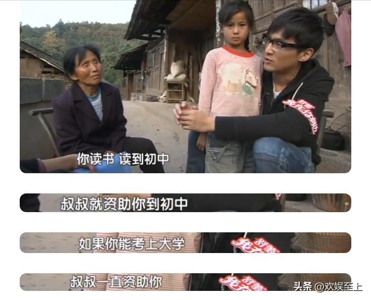 胡歌当年参加过一档节目,去到大山里,了解了一个贫困人家的困境,并且主动承担这家人的小女孩资助,这个小女孩也不负所望的读到大学,成为一名很优秀的人,胡歌的所有公益性行为都不是说说而已,而是用付出了行动。