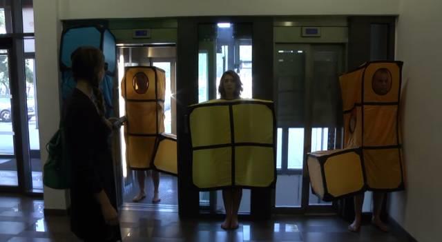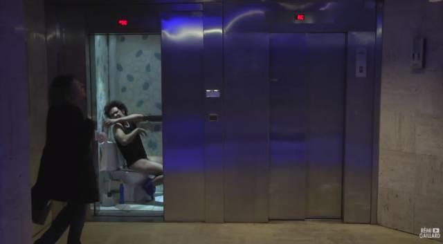 雷米的的脑内剧场。雷米是极具天分的剧场艺术家,并勇于把脑内剧场搬到现实中来。如果说雷米前期的行为是为了整蛊,那近期的“新作”就已经变成了一种经过梳理后目的性很强的“整蛊"。他的电梯系列充分利用电梯内部狭小密闭的空间,在电梯内有意设置各种情色、诙谐、意想不到的生活化场景,当乘坐电梯的人按动电梯按钮,打开电梯的那一刹那一定让他们以为是走入了另外一个空间。