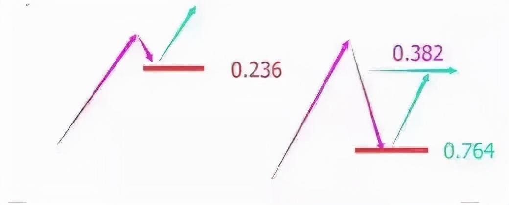 黄金分割重要数值一:0.236;0.764 这组数值代表市场强弱与多空的分水岭。