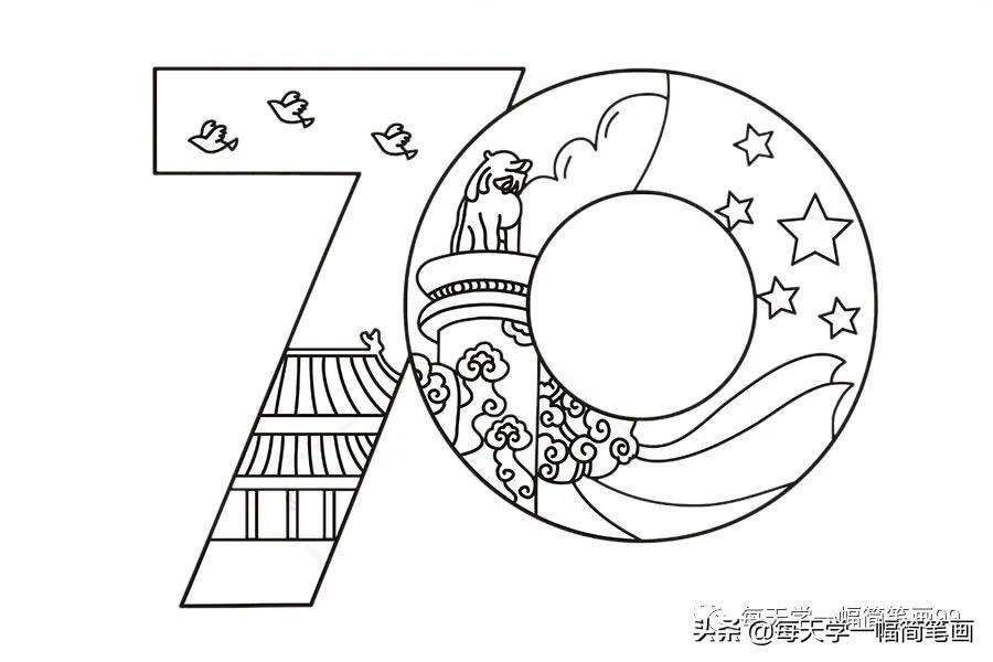 每天学一幅简笔画-中华人民共和国70周年简笔画