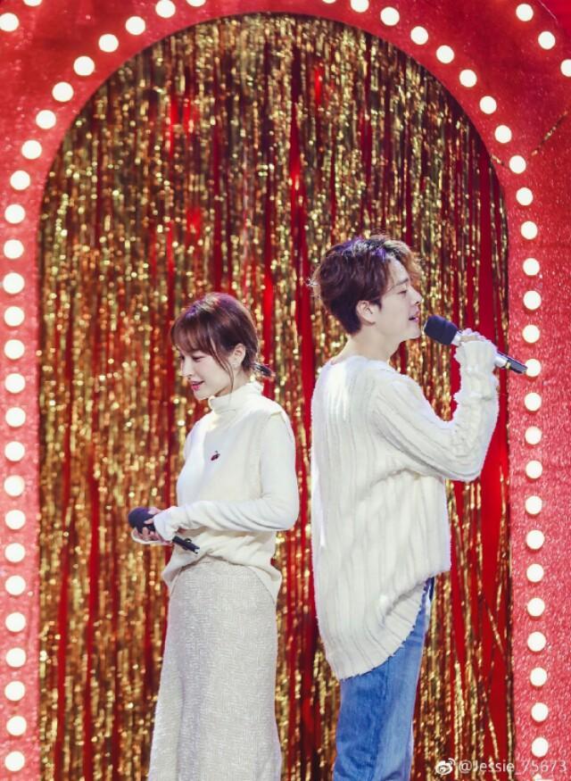 两人都穿白色毛衣,网友们都觉得像是情侣装,莫名地有种恋爱的感觉。