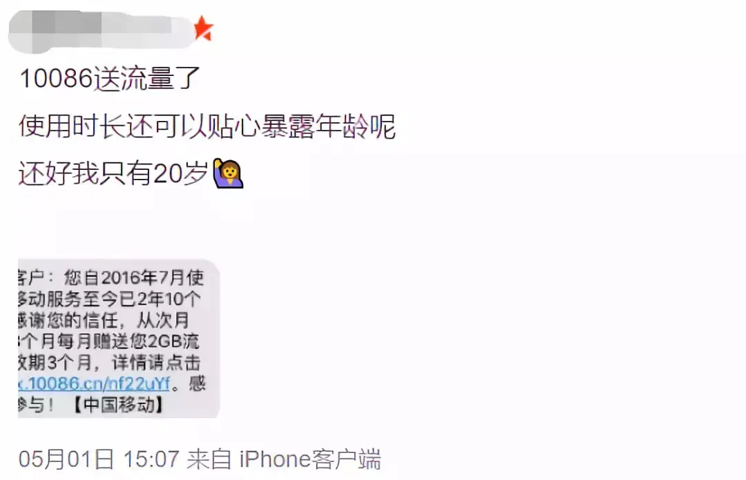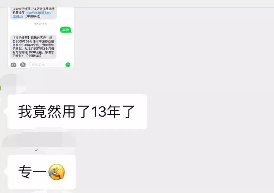 移动用户向10086发送“2019”可以参加查“网龄”送流量活动