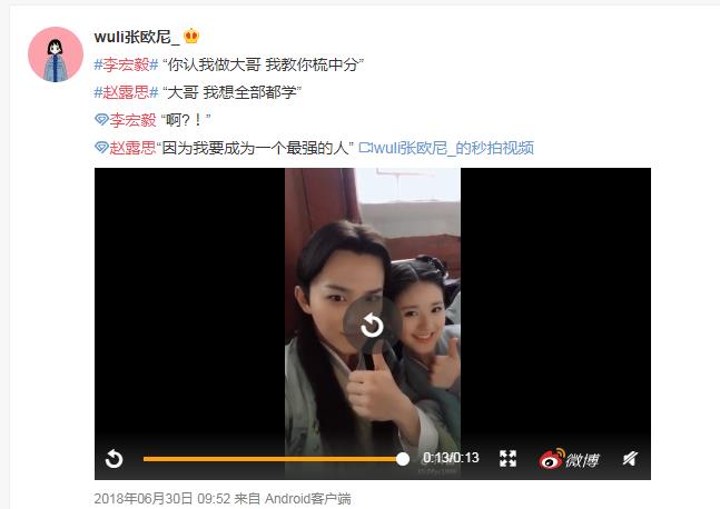 吃瓜群众快出来吧!又一对因戏生情的情侣要被曝光啦!新生代演员的恋情看来是藏不住了。奇幻网络剧《青囊传》即将上档,作为该剧的男女主,李宏毅和赵露思就开始了一波真情实感的营业,喊话对方,互发海报一系列操作让群众直呼:好甜!俩人的微博互动也十分有爱。