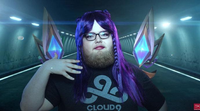 可能受到队内成员Sneaky的影响,C9战队在最近的推特中就发布了一张神秘照片,并且宣布在之后会有神秘惊喜。照片中我们可以看出,被很多玩家戏称"金毛狮王"的辅助选手Zeyzal正在被化妆师抹上唇彩。结合背景另一位选手的装扮,很多玩家猜测C9战队可能会COS游戏内的KDA女团。