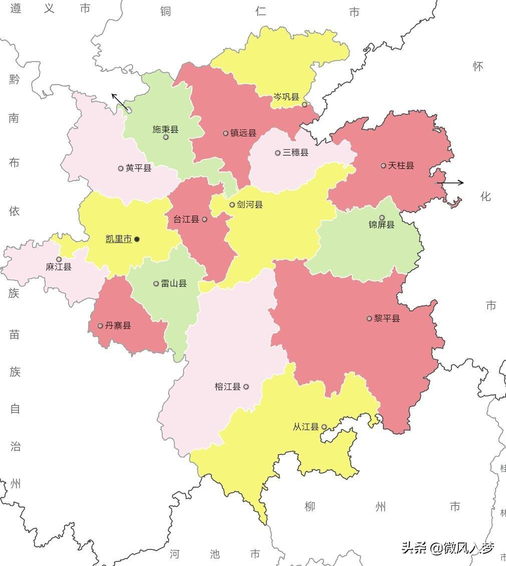 县(15个):黄平县、施秉县、三穗县、镇远县、岑巩县、天柱县、锦屏县、剑河县、台江县、黎平县、榕江县、从江县、雷山县、麻江县、丹寨县
