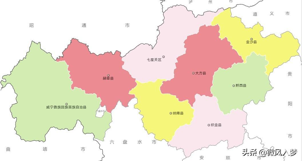 县(6个):大方县、黔西县、金沙县、织金县、纳雍县、赫章县