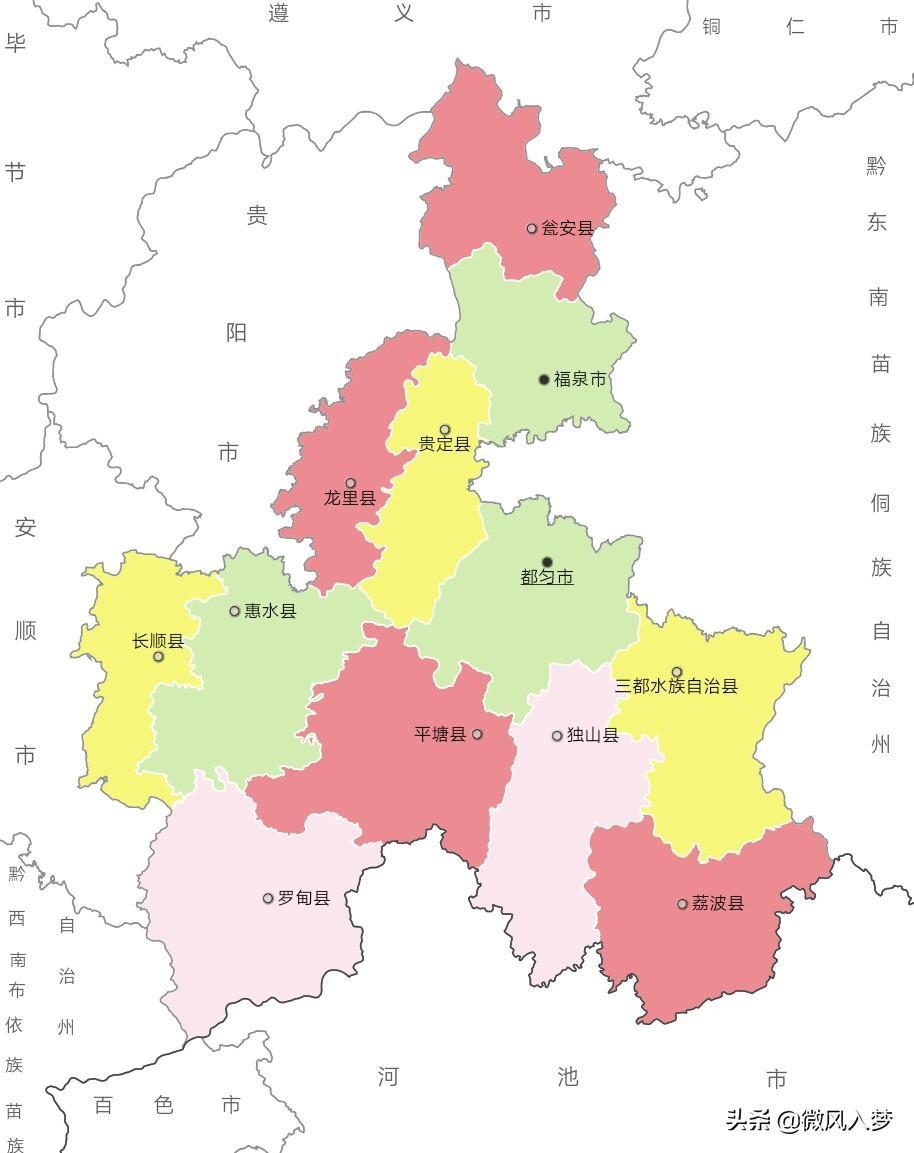 县(9个):荔波县、贵定县、瓮安县、独山县、平塘县、罗甸县、长顺县、龙里县、惠水县