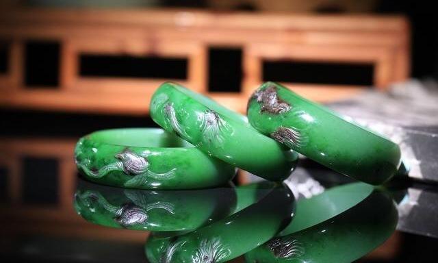 俄碧储存量大,山料中就能产出优质的宝石级碧玉,这些碧玉被大量制作成手镯、珠串、手把件,价格低,品质不错,弥补了中国优质碧玉的不足。