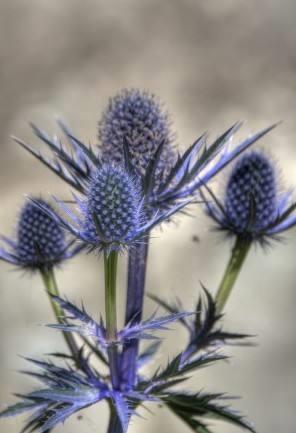 海冬青是一种美妙的植物,能为花园增添质感。锯齿状的叶子,簇生的蓝色花朵,周围环绕着多刺的苞片。