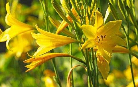 黄花在夏末有一个尖尖的黄色花朵,黄花比较整齐,高度不到60CM。