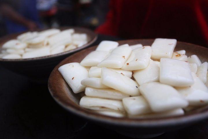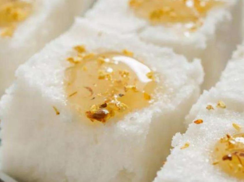 桂花年糕外表雪白,淡淡的桂花香味沁人心脾,诱人食欲大增。口感软糯富有弹性,甜而不腻,越吃越有滋味。