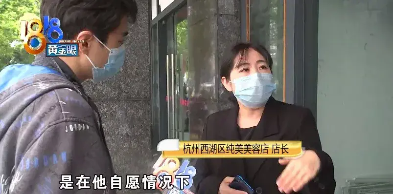 杭州西湖区纯美美容店 店长:“是在他自愿情况下,他选择治疗,我们才支付,所有的都是,不会亲自给顾客操作任何东西的。都是他自愿同意后,我们才会进行(自愿同意你们会亲自操作吗)我们不会亲自操作。”