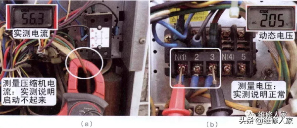1.测量压缩机运行电流和电源电压