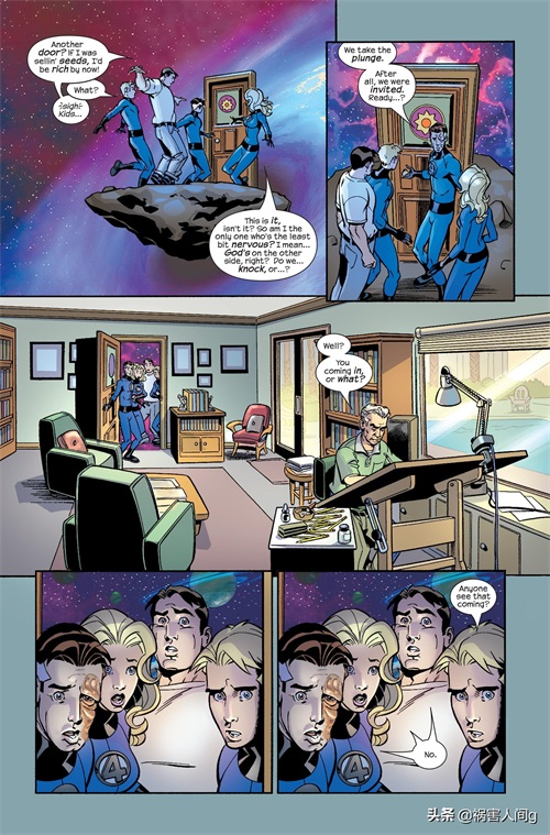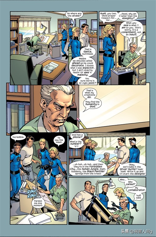 在这里死侍称呼他为“上帝(God)”,他的背影与2004年漫画《神奇四侠》#511中的一样是以杰克科比为原型创作的。