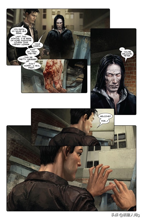 在2007年漫画《惊心动魄蜘蛛侠》故事线“重返黑暗”中由于彼得.帕克公开了自己就是蜘蛛侠的身份,引来了金并手下的狙击手将彼得的伯母梅.帕克打成重伤,愤怒的彼得.帕克来到了医院后的小巷中捶打着垃圾箱,这时一个老人出现在彼得帕克身后,与他聊起了他的生活,当彼得.帕克问起他是谁时,老人身后冒起一片金光,并且说“你知道我是谁”。而后彼得问“我知道你无所不能,而我只是个小角色,我伯母快死了这件事就是你宏达构架中的一部分?”