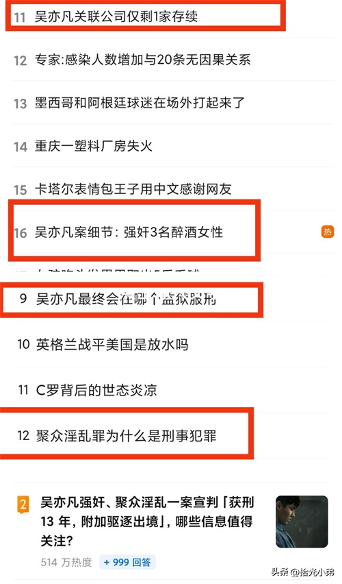 他因为强奸罪外加聚众淫乱,将面临13年监禁,而且因为个人偷税漏税还要缴纳6个亿的罚款。最近的热搜榜都是和世界杯相关的。他的这件事出来之后快把各大热搜平台热搜榜占完了。