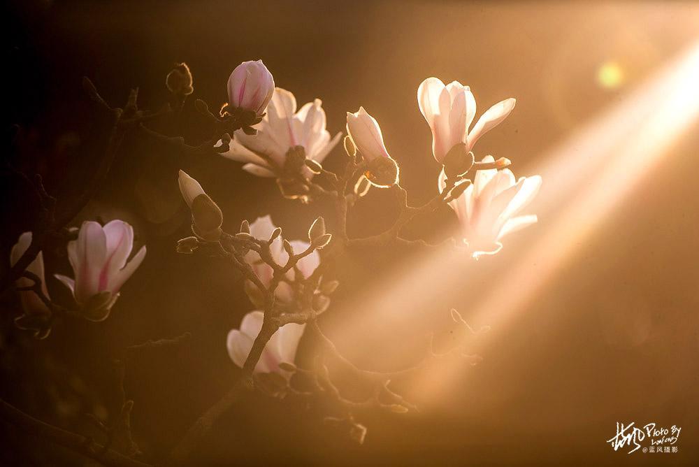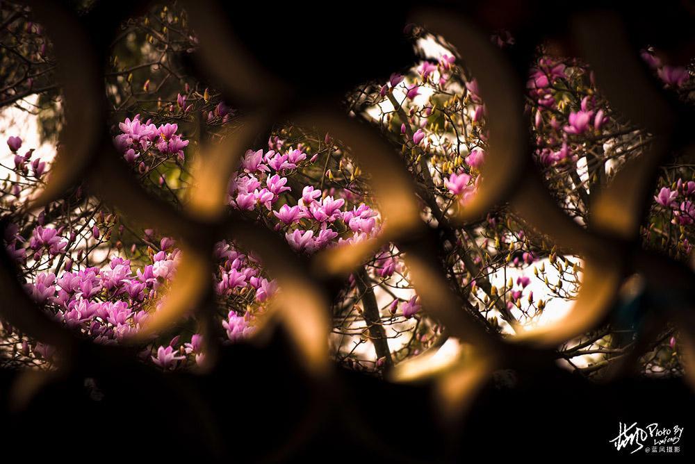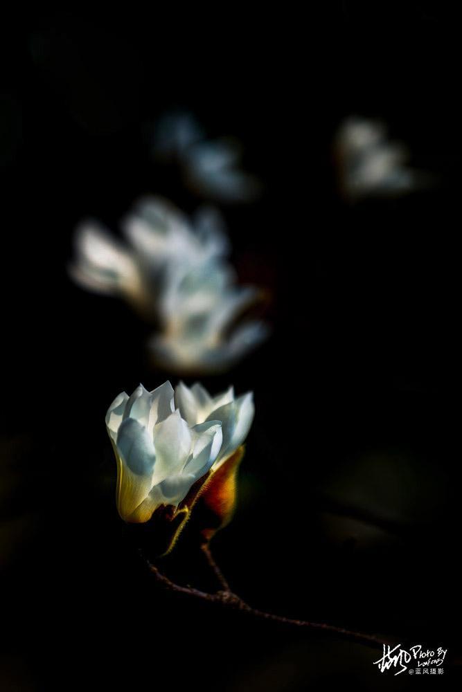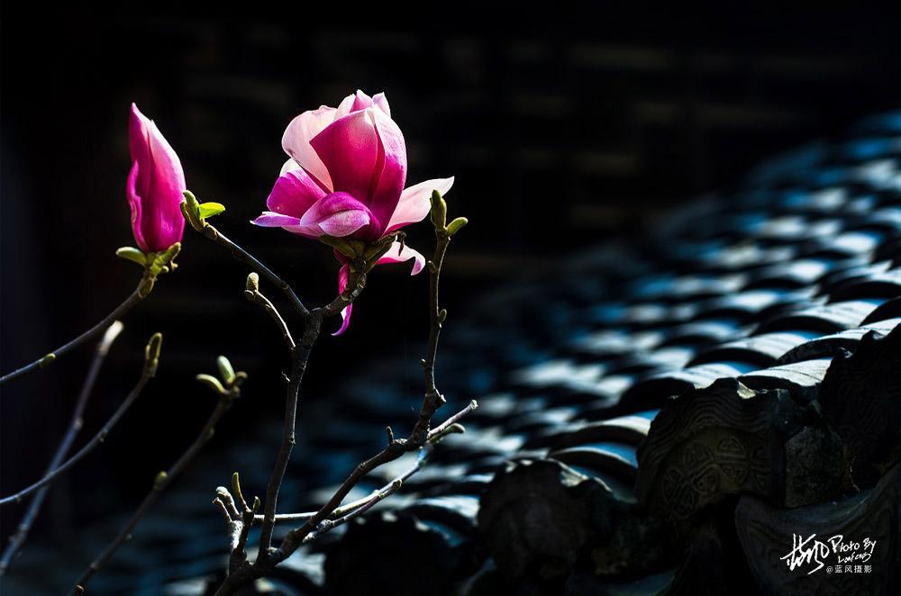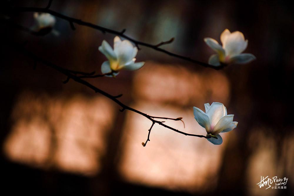 玉兰花很美,但不是太好拍,因为玉兰花的树型都比较高,假如不用长焦镜头的话,拍出来的场景就会比较大,花朵也不够突出,还有玉兰花的枝条比较乱,这个在拍照的时候就尽量去避免,多找一些枝型好看的场景拍。花卉拍摄同样讲究疏可跑马,密不透风的构图,这一点和中国画的思路一样。