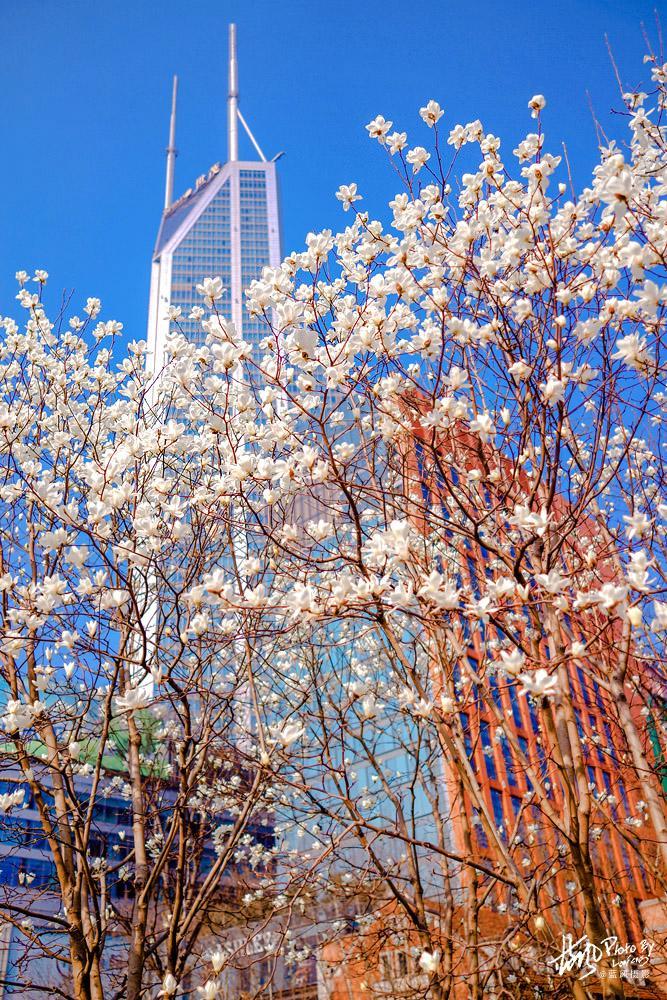 这几张拍于上海人民广场。拍照玉兰花,还是尽量找一些好天气去拍,可以更好的突出花朵的立体感和鲜艳的色彩,蓝天白云有时候也是很好的背景。