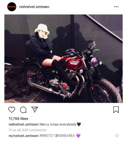 SBS歌谣大战举办当天,yeri在红贝贝的ins上发了一张坐在酷炫摩托车上的照片。