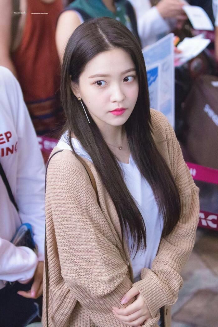 果然中分长发,一边戴上发夹是最适合yeri的发型,加上满分的妆容和服装,瘦身成功的妹妹的确很漂亮呀。