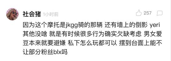 单从这件事来说,其实yeri也就是看到摩托车想酷酷地拍个照,就像很多女生看到好看的东西都会想拍照一样,是人之常情。