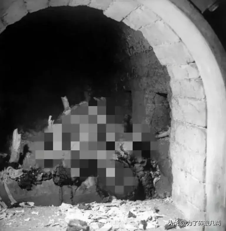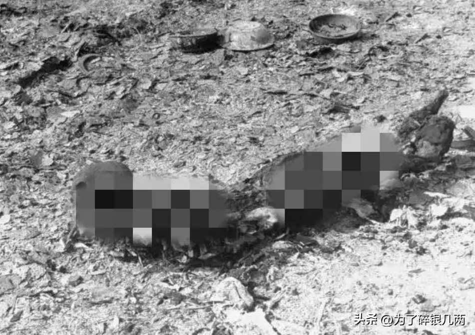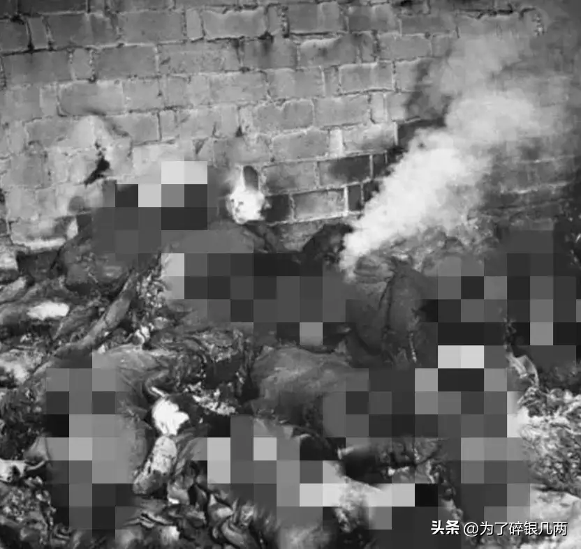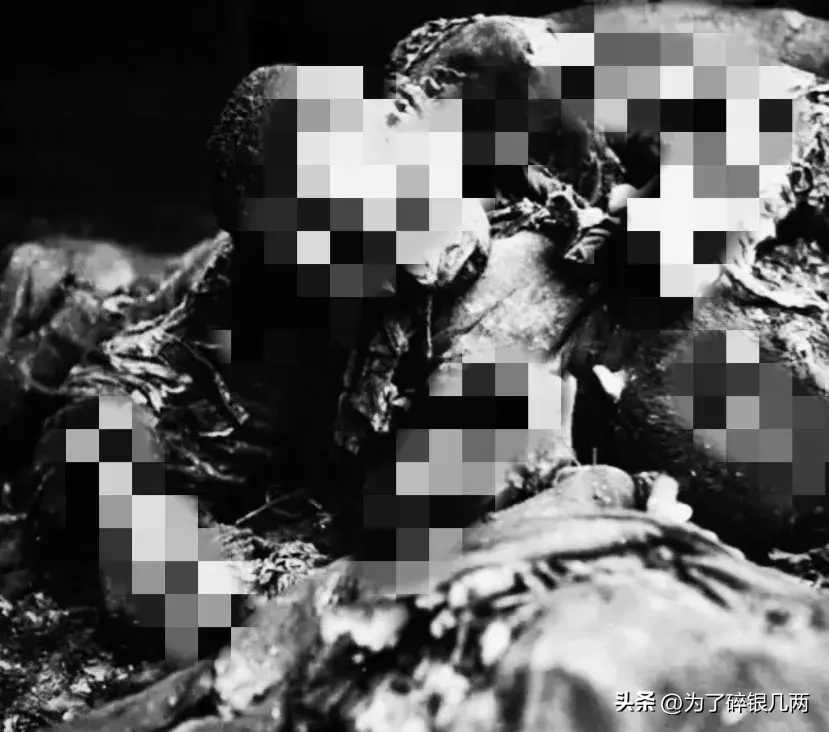 这是浇上汽油然后进行焚烧的尸体,由于汽油被烧完了,尸体只是被烧焦,在当时这种方法处理尸体,也是十分常见的。