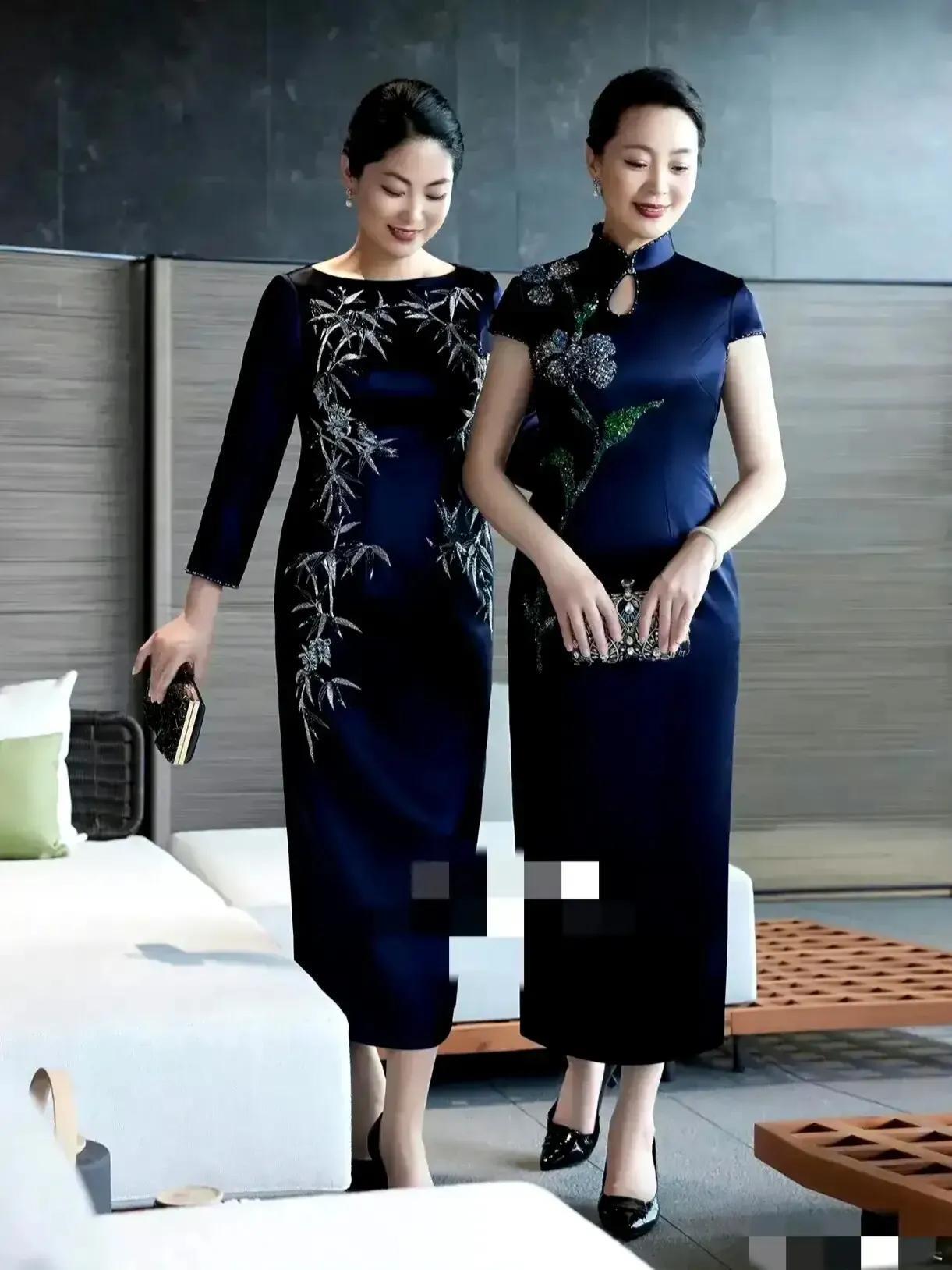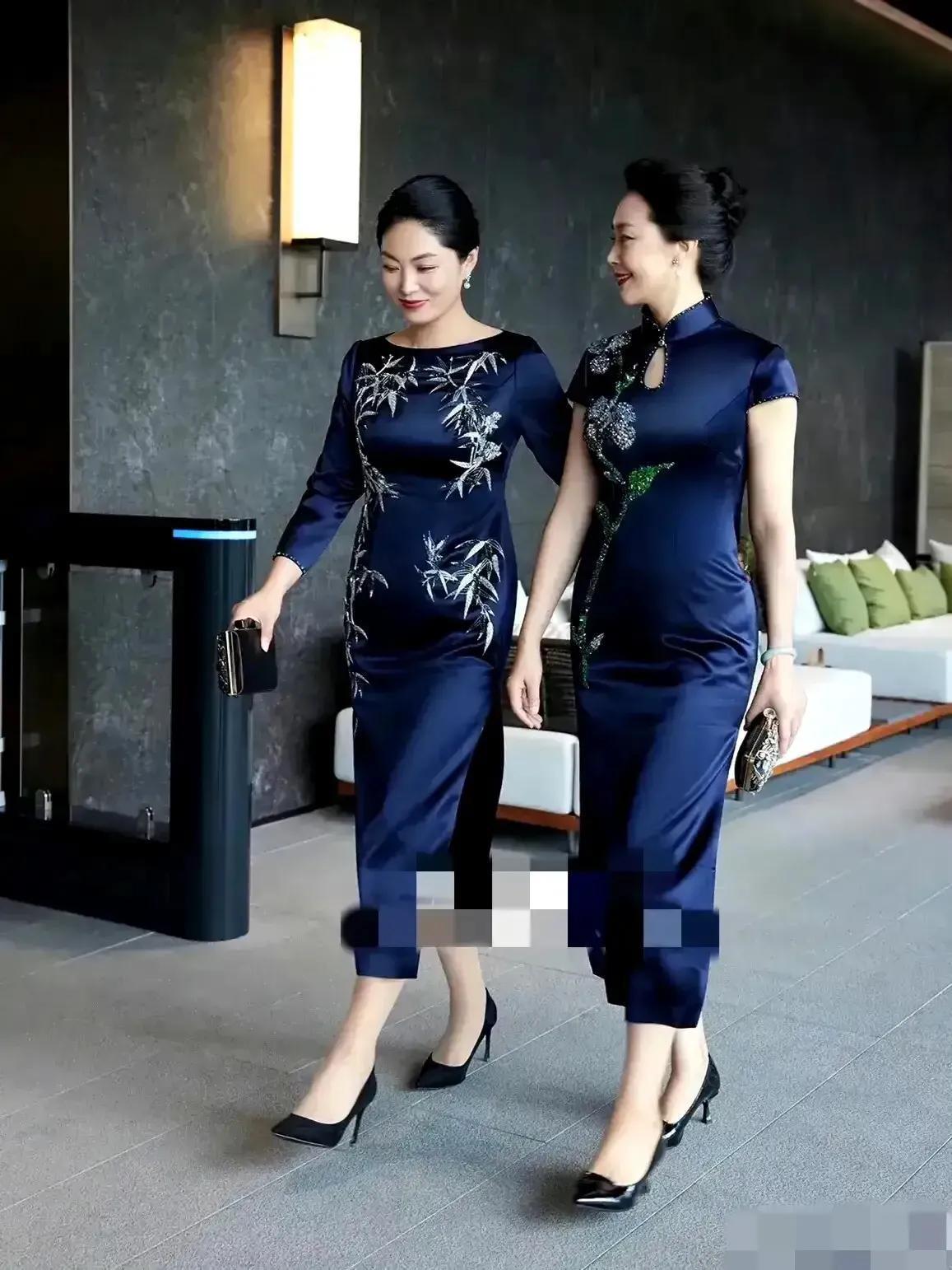 被这组照片惊艳到了!两位大姐身着靛蓝色的祺袍,尽显高雅气质。