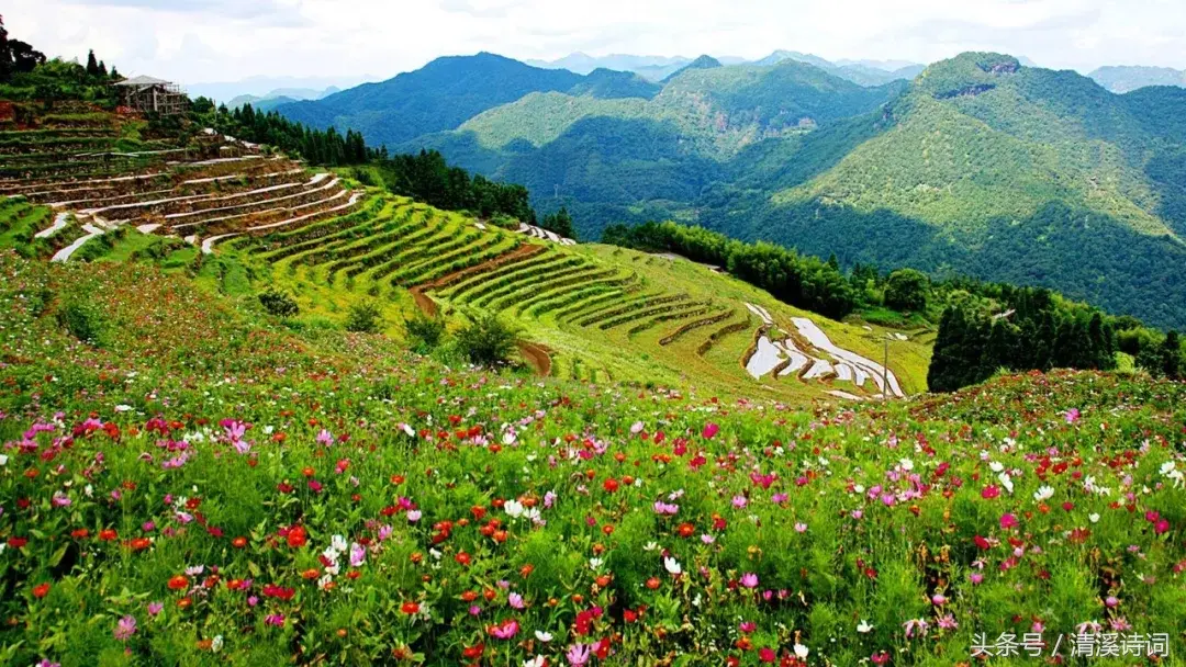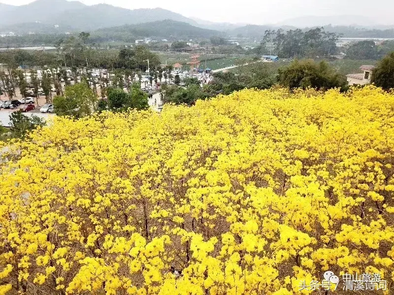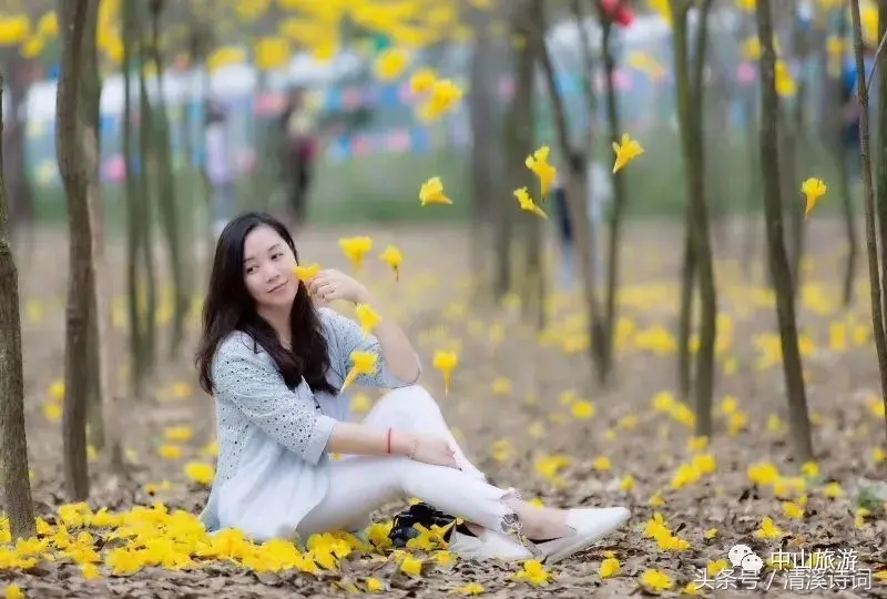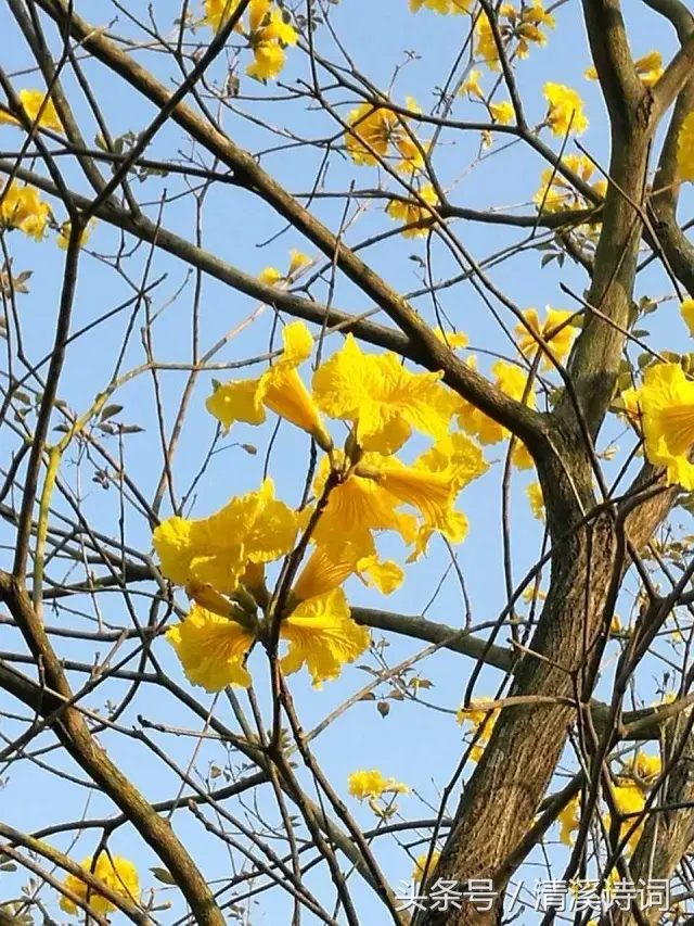 三月风铃着嫩装,鹅黄蝶影曳山岗。