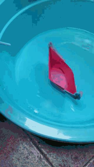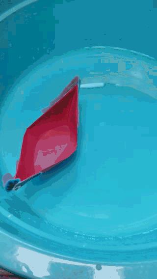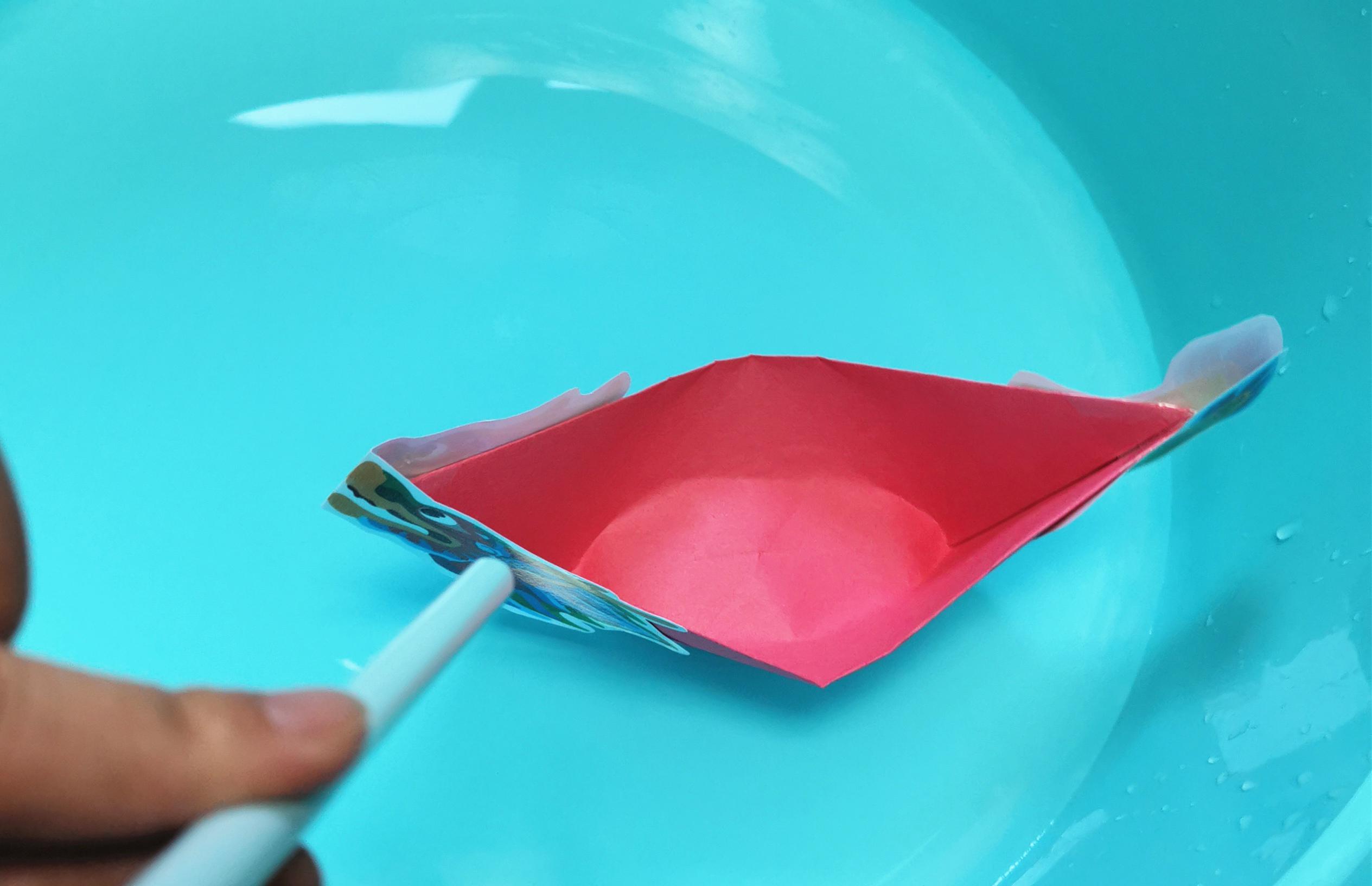 现在,放入水中,用吸管吹气,就可以“赛龙舟”啦!