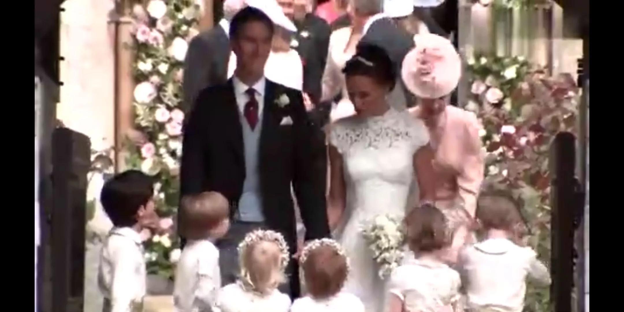 网上有段视频显示,在凯特王妃妹妹大婚的日子,作为小花童的英国王子乔治不好好做花童,四处瞎晃,不小心踩到了新娘子价值4万英镑的的婚纱,被看到这一幕的妈妈凯特王妃叫到角落里进行了严厉的批评教育。