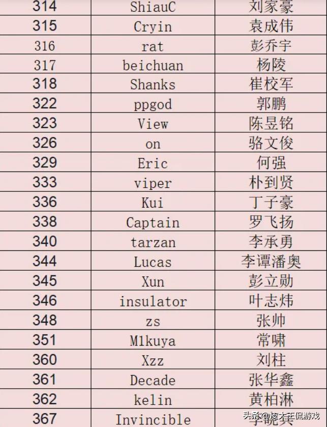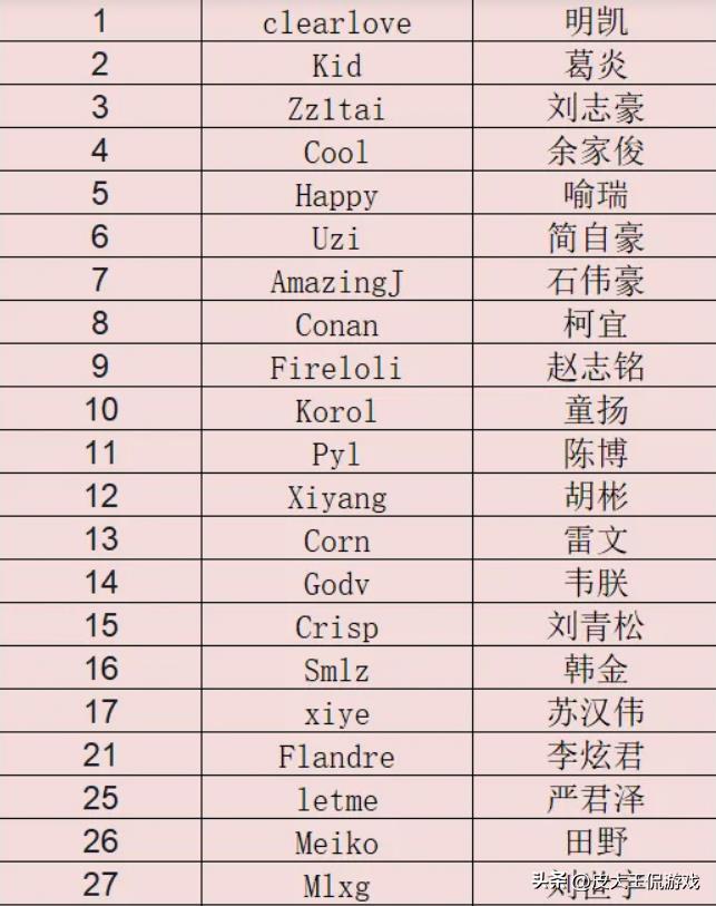 比如说前SNAKE战队的ADC选手水晶哥就遗忘了自己的选手编号,所以在选手编号的列表里面就没有刚子的讯息,在刚子直播的时候也曾被粉丝们问过这个问题,而当时的刚子也只能通过自己的老队友来推算自己的选手编号,不过他可以确定自己肯定是前二十里面的。