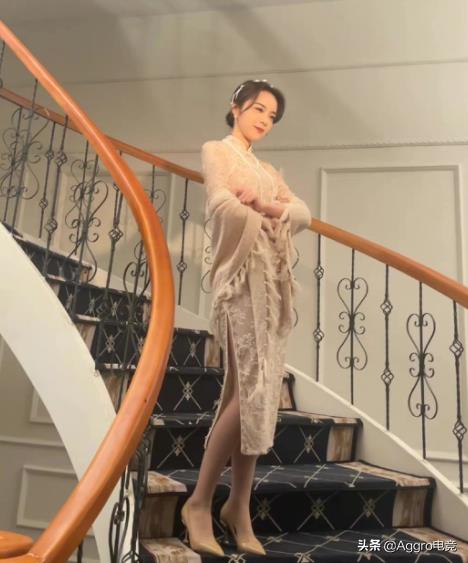 可以看到余霜站在复古的螺旋楼梯上,宛如贵家小姐一般,阳光的照耀下真的有点“千金”的味道,更吸人眼球的是那双大长腿,这一瞬间又有点像“妖娆的妻子”仿佛要给人榨干。
