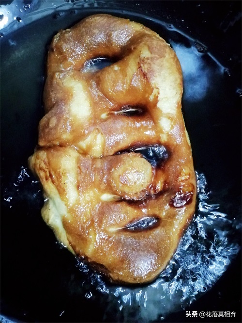 刚出锅的糖油饼香而不腻、外皮酥脆、里面软糯,味道不比外面买的差。