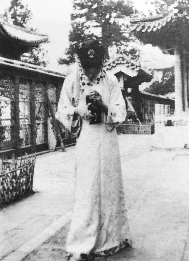 婉容在低头看相机。十分专注。那时候的照相器材和用品都很贵。相机是德国蔡司相机,是溥仪特意买来的。