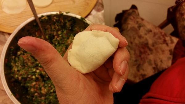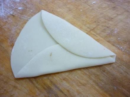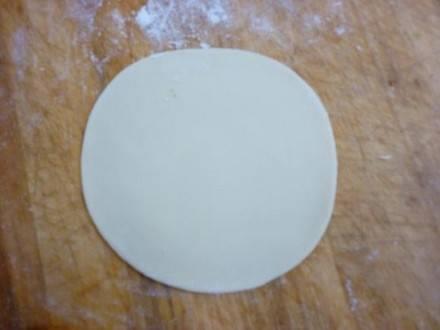 制作方法:面粉用开水烫成面团,揉光揉匀。下剂子,擀成圆皮。