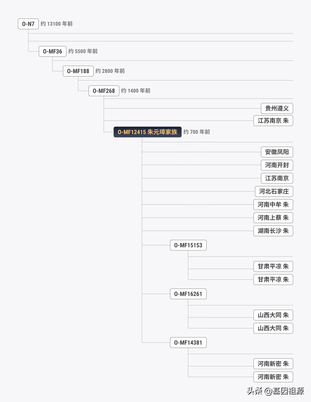有意思的是,在南方的一些家族中还流传着自己是建文帝的后裔。毕竟曾在多本家谱中见到记载。目前研究出朱元璋家族的遗传标记为O-MF12415,它的形成时间为 710 年前,据统计,如今该家族后裔主要分布于我国北方各省,目前大约占到中国男性人口的0.04% 左右。但遗憾的是,至今尚未成功征集到自称建文帝后人的样本。