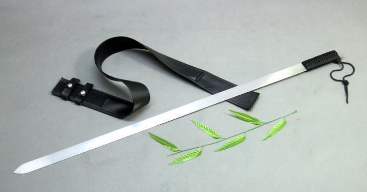 外形特点:属于软剑的一种。此剑能做360度弯曲,程腰带状别在腰间,抽出后即可恢复原状,因此又称为腰带剑标准腰带剑剑全长91cm刃长76cm刃宽3.5cm柄长14.5cm,不锈钢。