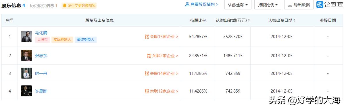 马化腾持股比例:54.2857%