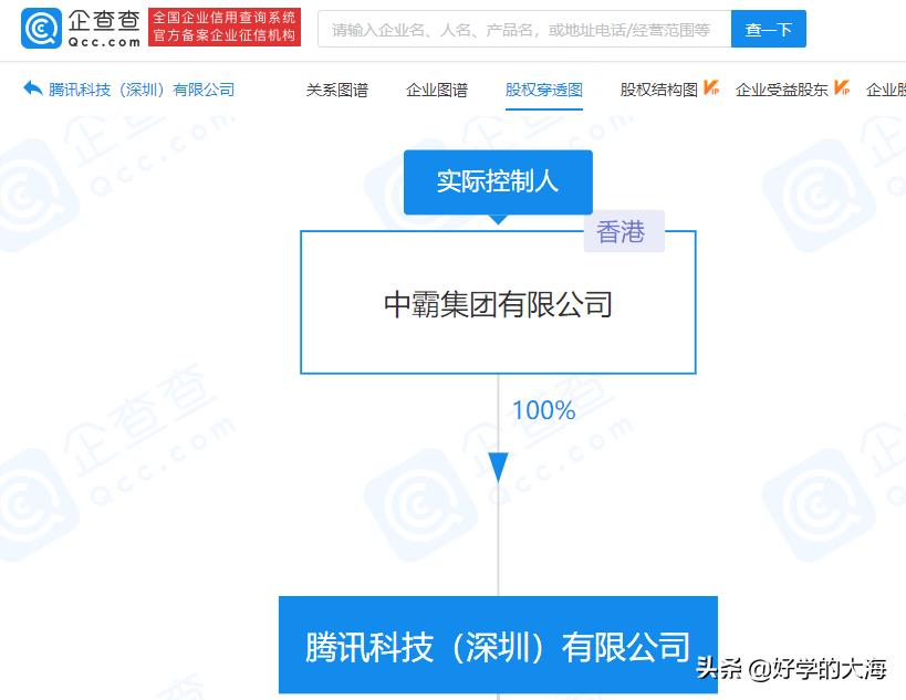 4、腾讯科技(深圳)有限公司,由香港的中霸集团100%控股,中霸集团的股东是谁就不好查了。