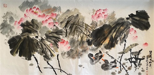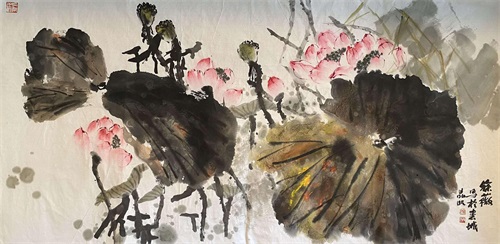 《碧荷出幽泉》、68cmx136cm、创作时间:2016年