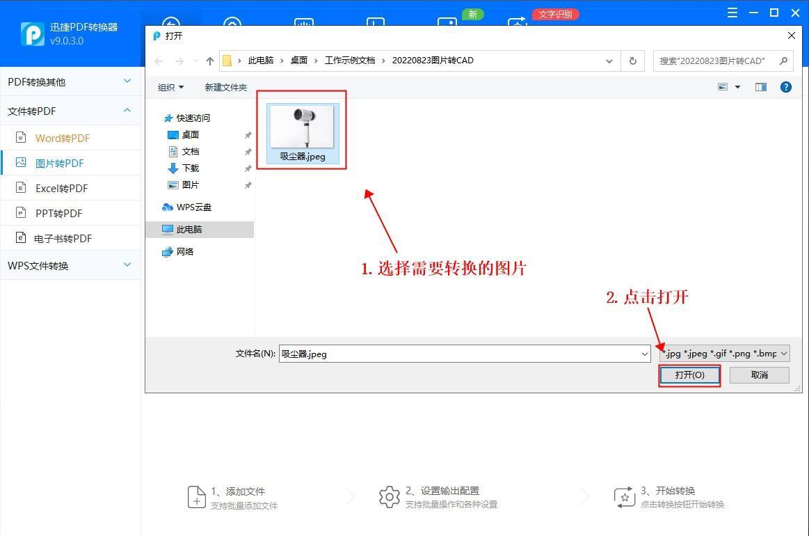转换的思路为:先使用PDF转换器把图片转换为PDF格式,再使用CAD转换器把PDF转换为CAD图纸,因此需要用到两款软件。