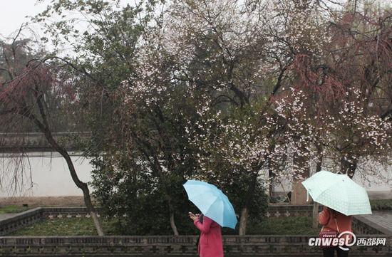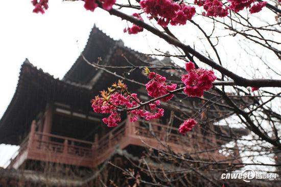 西部网讯 (记者 魏永贤) 今日(3月19日),西安青龙寺,淅淅沥沥的春雨里,早期开放的樱花显得格外清新美丽,紫红的彼岸樱,粉红的八枝垂樱、白色的染井吉野等早期樱花像春的使者迎接着雨中赏花人。