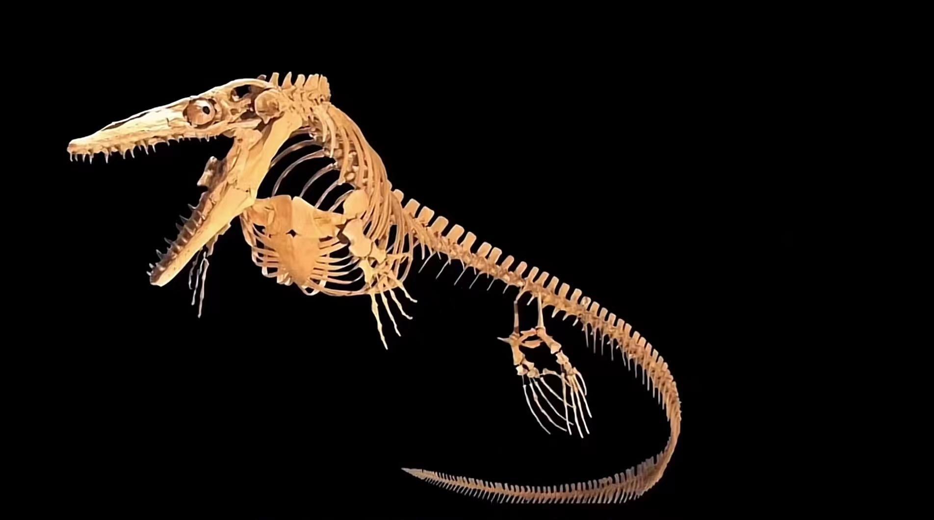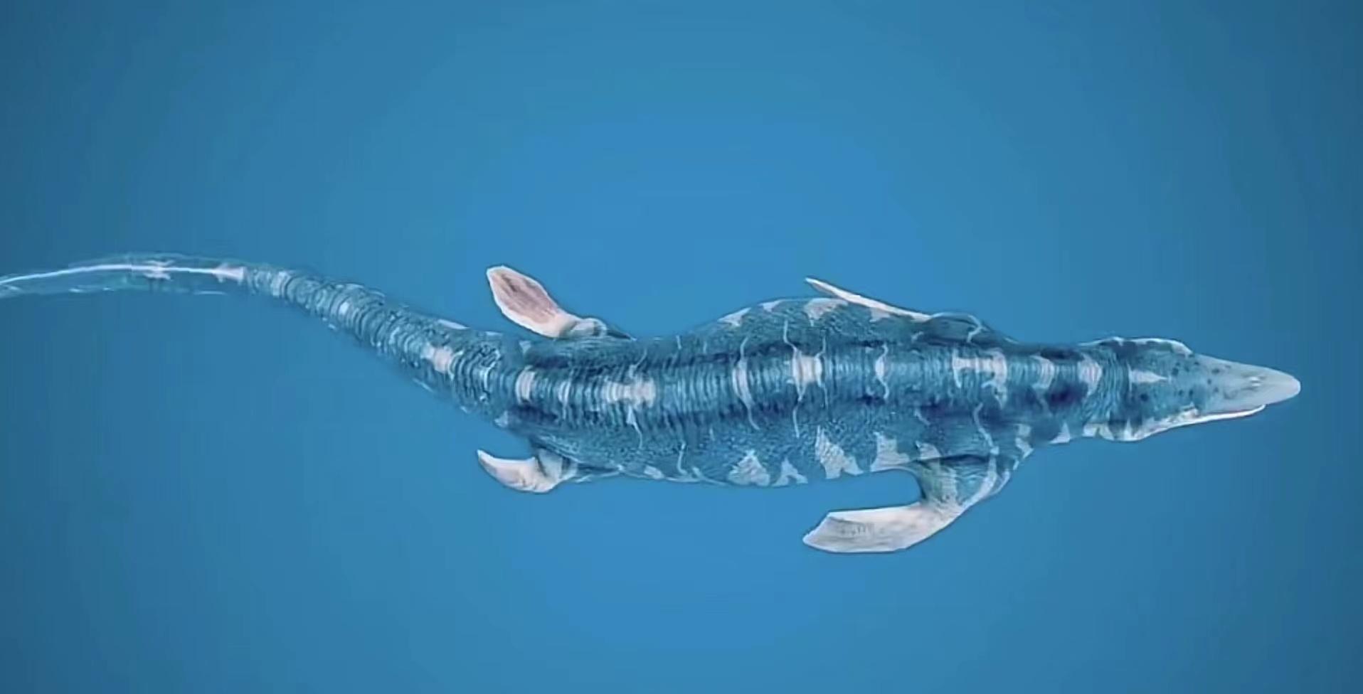 起初,他们只是在浅海中觅食,随着时间的流逝它们渐渐地适应了在海中的生活,脚趾开始逐渐演化成了蹼足,而身体也进化出了,具有高度流体力学的长筒状,谁也没想到就是这样一个不起眼的小蜥蜴,最终演化成一个体长进17米,体重超过20吨的海洋巨兽。