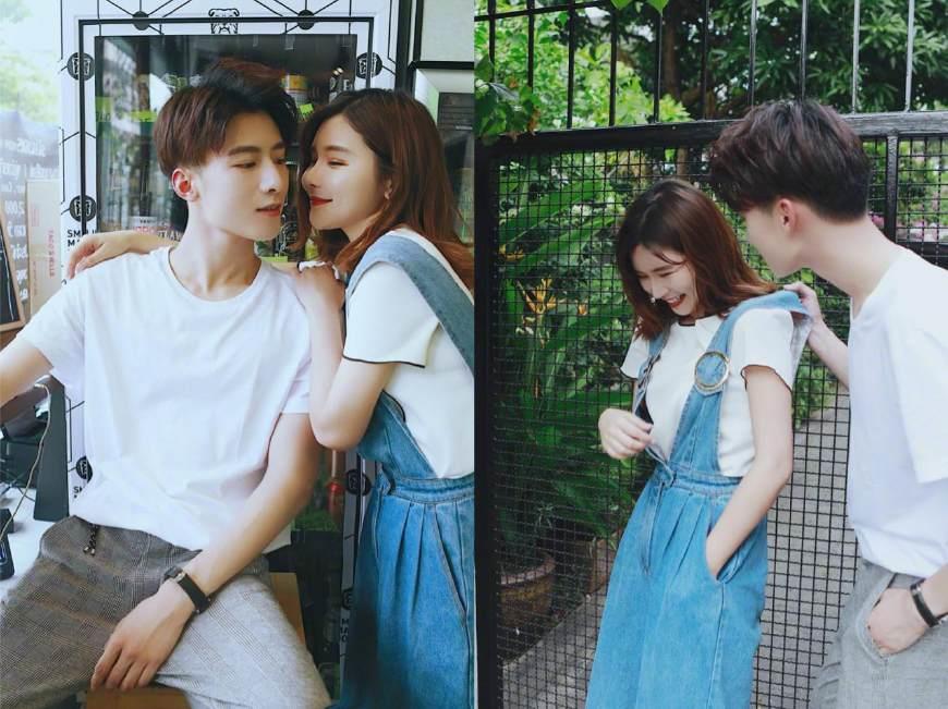 穿着背带裤的穆雅斓少女风十足,和男友同框,简直就是偶像剧的节奏,甜死人了!