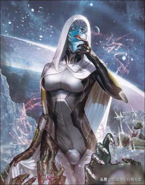 最后还有一个超巨星,可惜的是在复联3中没有出现可惜了,作为灭霸最神秘的手下,她的能力绝对的可怕,具有精神传输和心灵控制技能,对灭霸的忠诚度绝对的第一,并且负责发掘智慧体并吞噬,她所知晓的,灭霸就知晓。