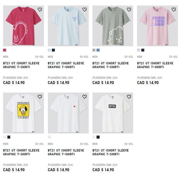这些衬衫将以12种适合年轻人的颜色和图案为特色,全都印着BT21不同卡通人物在上面。