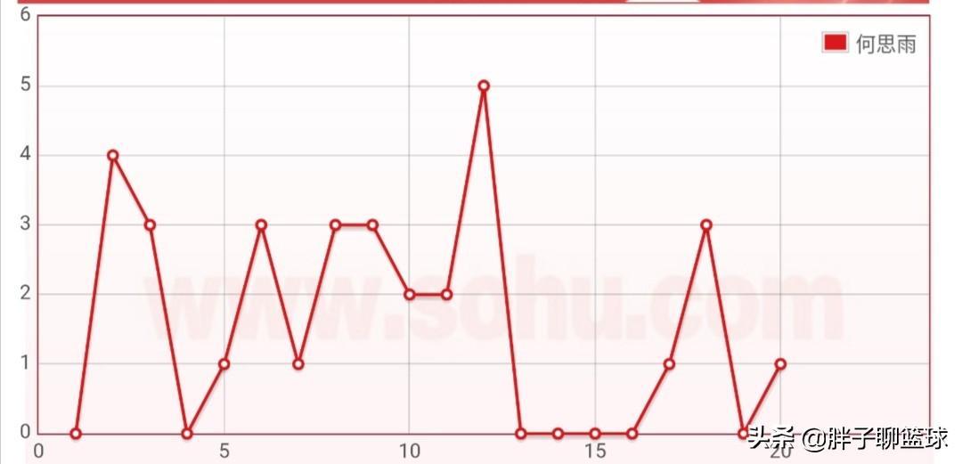 也许谁都没有想到作为一名二轮秀,何思雨能够在赛鸟赛季迅速成长为球队的轮转球员,并且在场上有着不错的表现。在对阵辽宁的比赛中,何思雨的表现让人眼前一亮,菜鸟赛季的他在这场比赛中得到了17分5篮板2抢断,得分是本土球员最高,同时也是个人职业生涯得分新高。
