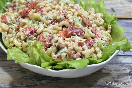 这种沙拉方式也可以用于蟹肉或者贝类,将它们混合在一起做成一道超豪华的海鲜通心粉沙拉。