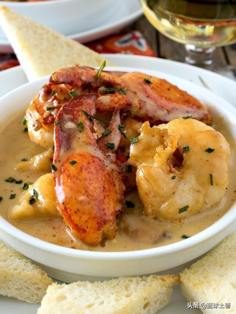 西餐的炖菜中经常使用黄油和牛奶,还会加入一点雪利酒以增加风味,至于做法其实很简单,就是把黄油融化,倒入牛奶,加入龙虾肉进行慢炖,最后加入盐和胡椒粉调味,并加入少许辣椒粉上色即可。